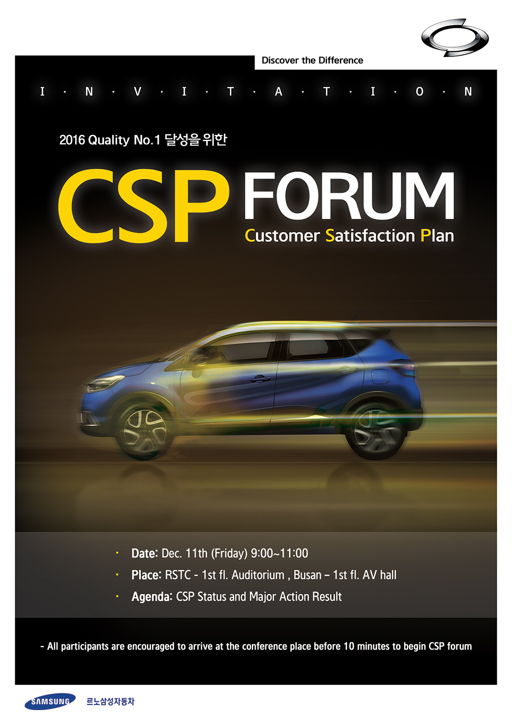 지난 전사품질 교육에 이어 2015 르노삼성자동차 CSP Forum을 준비했습니다.